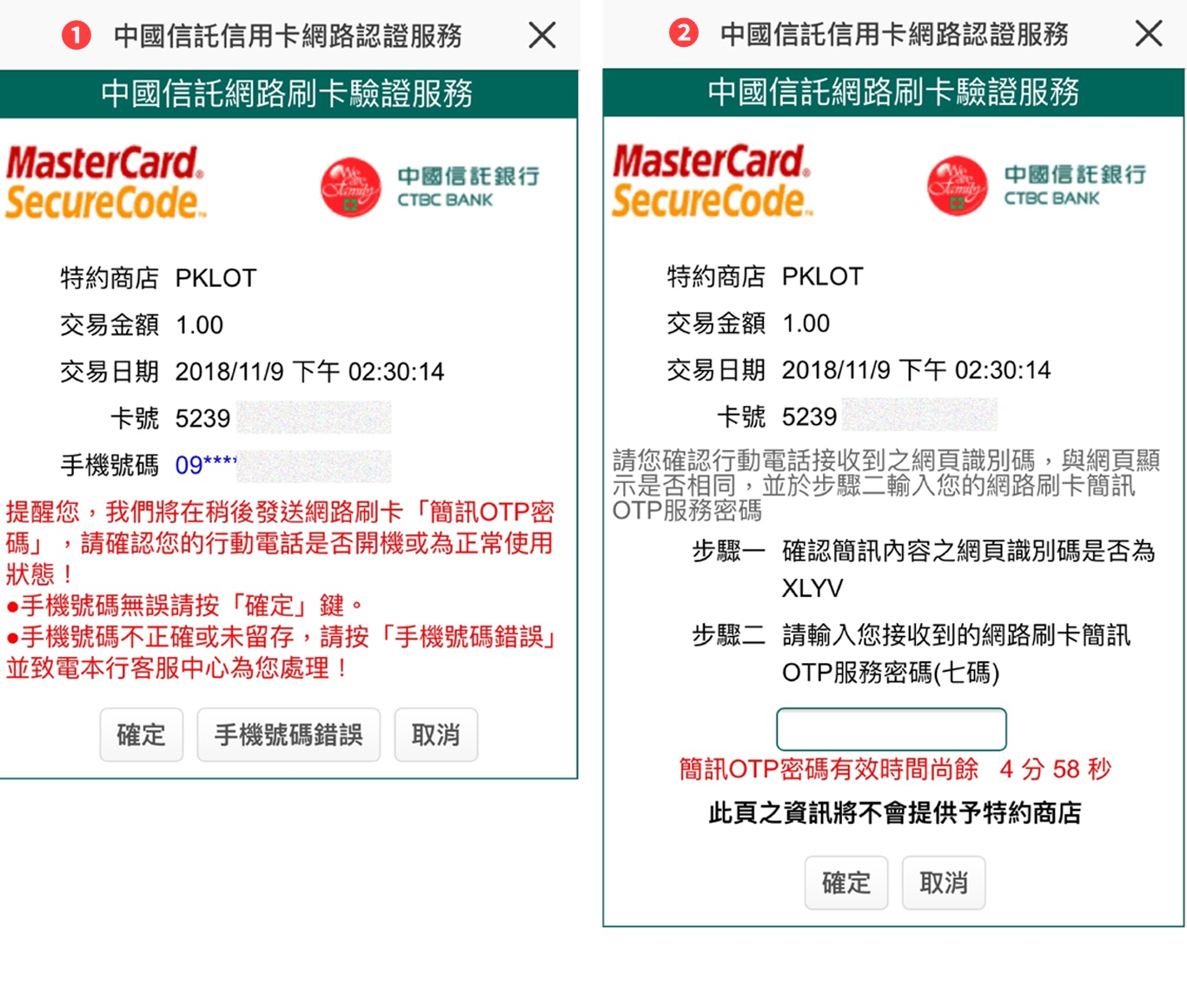 各家信用卡公司驗證畫面不同,下面以中國信託為例。