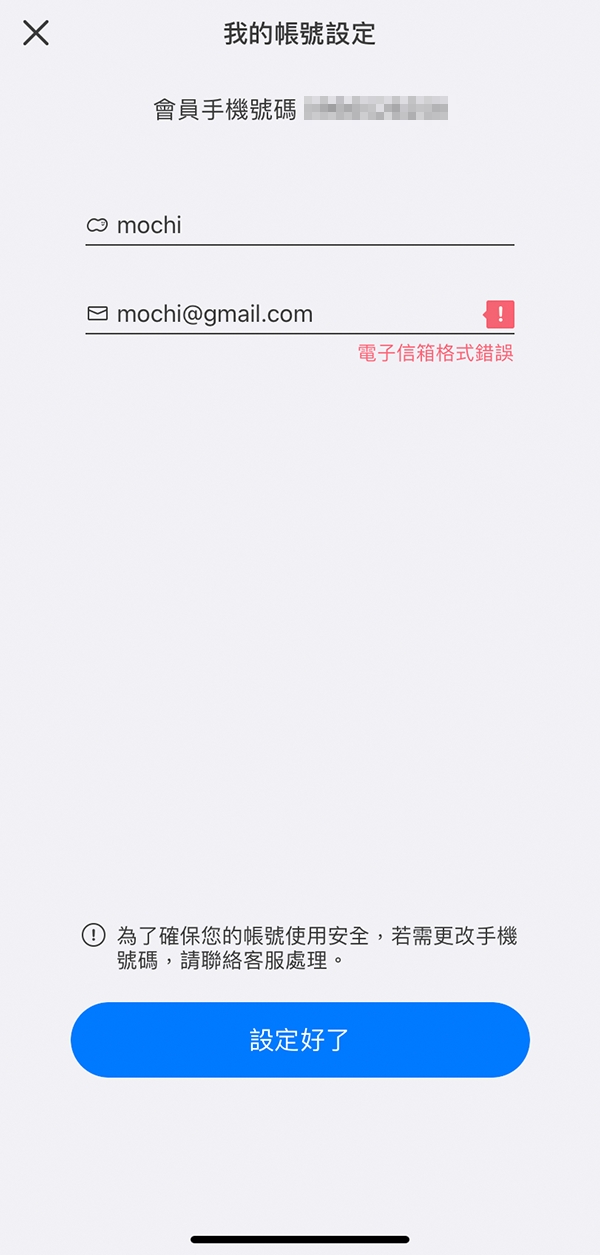 *若顯示「電子信箱格式錯誤」,請檢查 Email 文字後方是否多輸入一個空白格,若有空白格,系統將判定為格式錯誤。