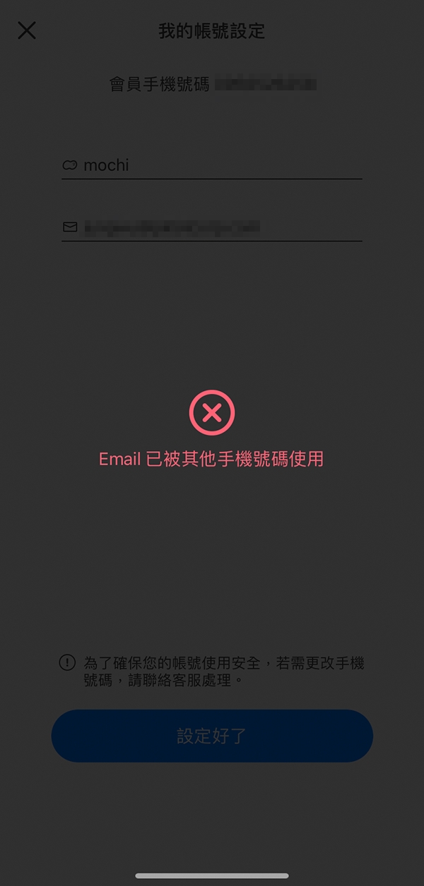 *若顯示「Email 已被其他手機號碼綁定」,常見的情況是,您在註冊時並不是輸入這個信箱(或手機號碼),如果您需要協助,歡迎聯繫麻吉客服