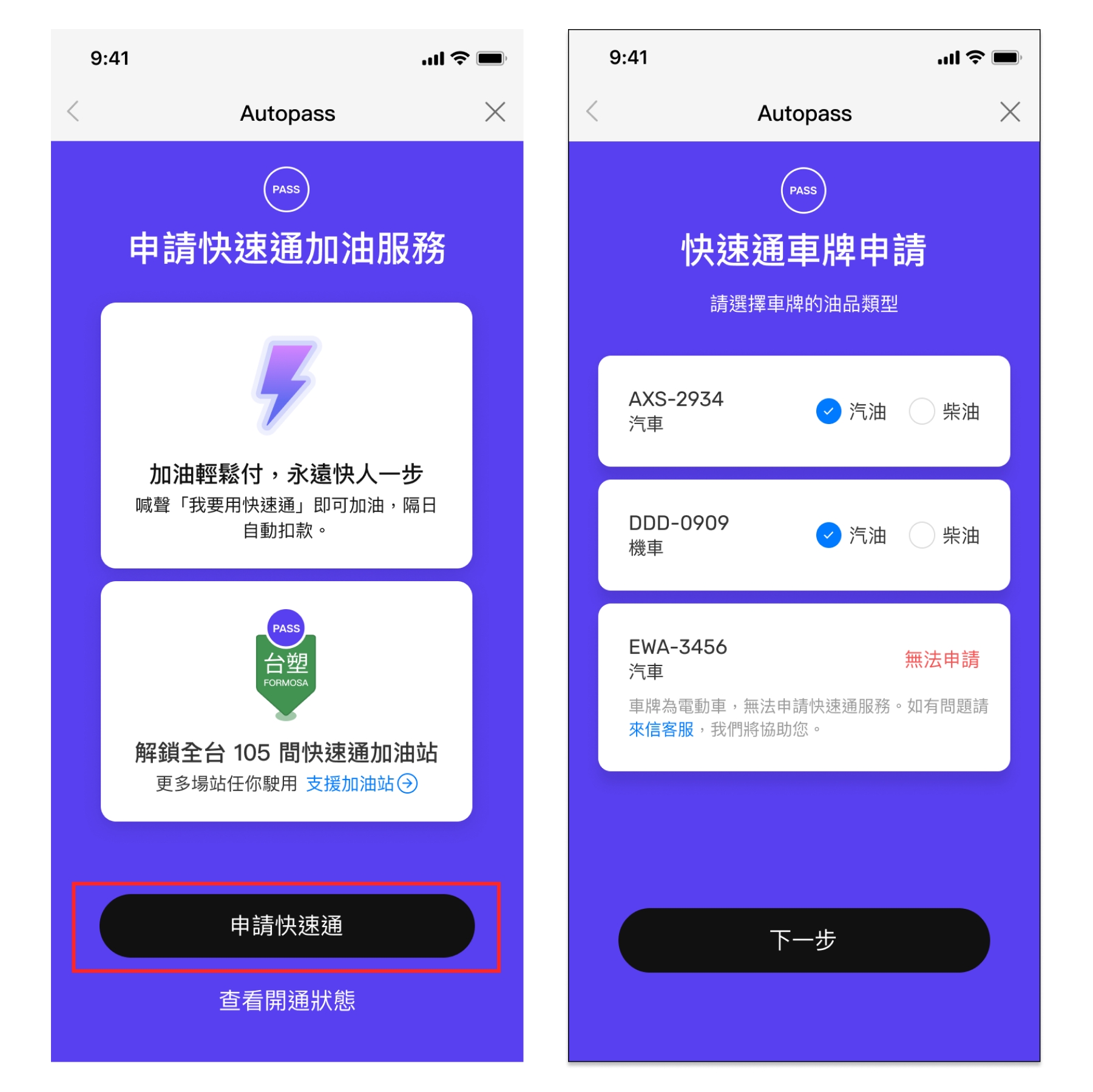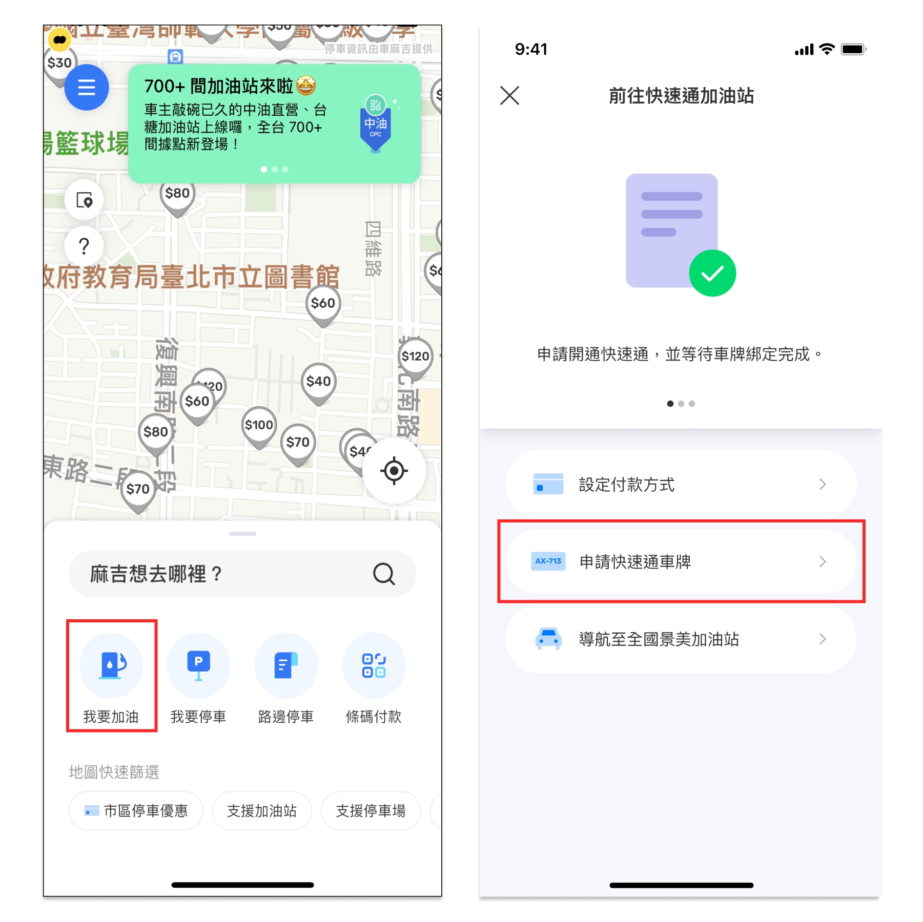 全國的加油服務,目前僅開放快速通的會員使用,欲使用請至「我要加油」中申請快速通服務。