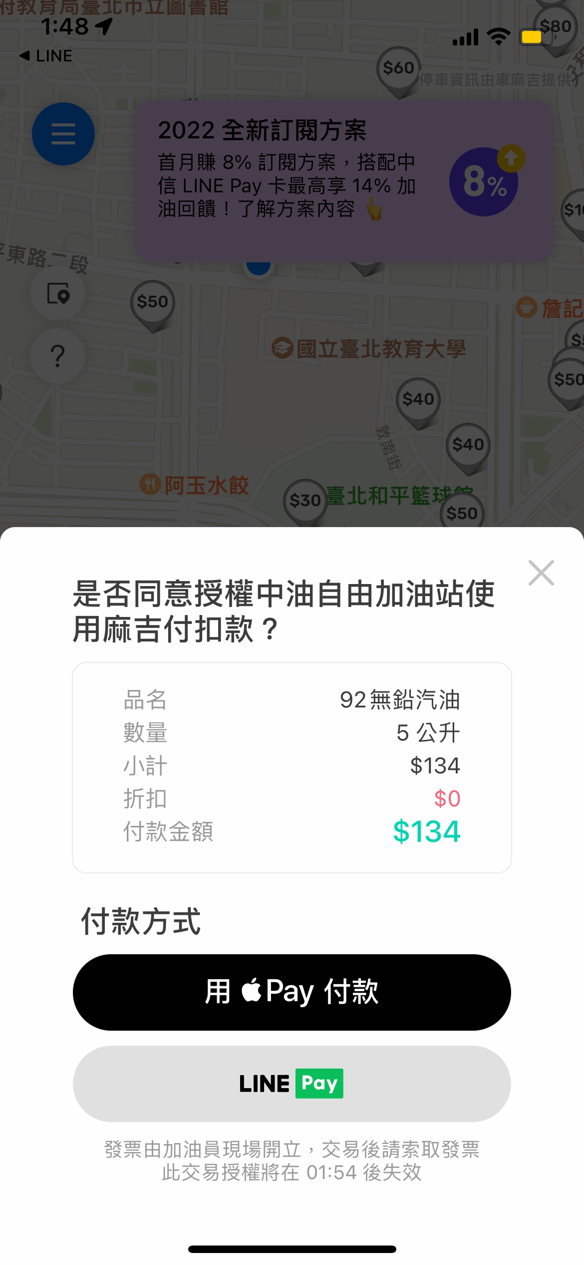 付款:加油員將傳送付款通知至 APP,請您點選您付款方式即可完成付款