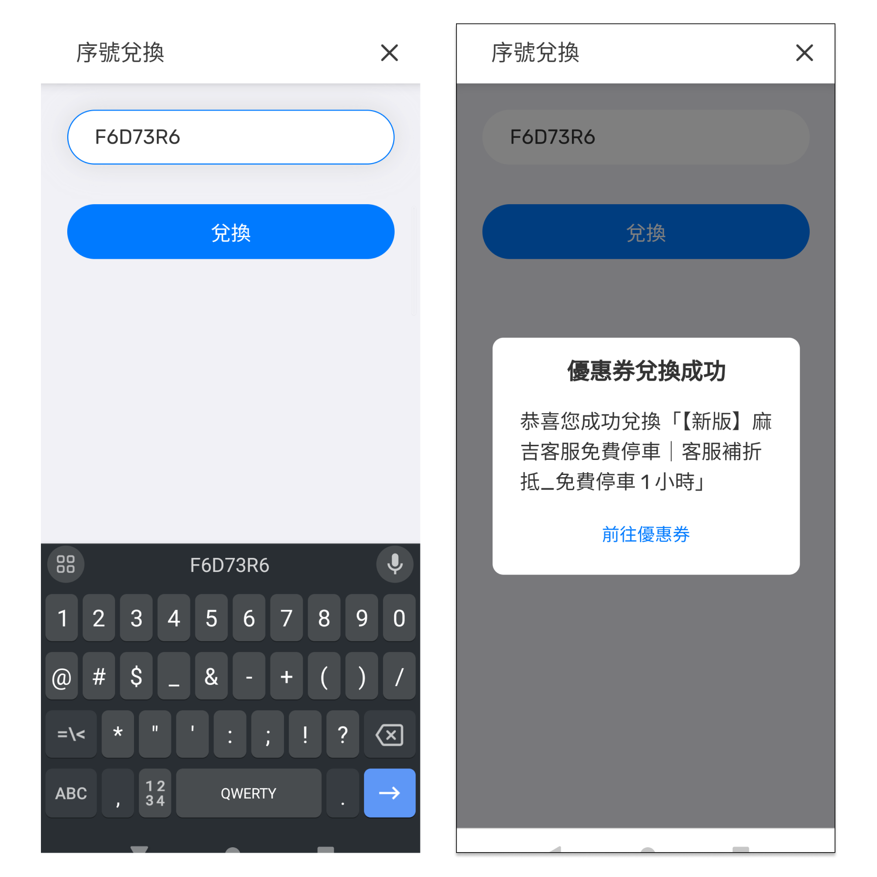 #### 輸入獲得的英文數字序號，即可成功兌換專屬的優惠序號。