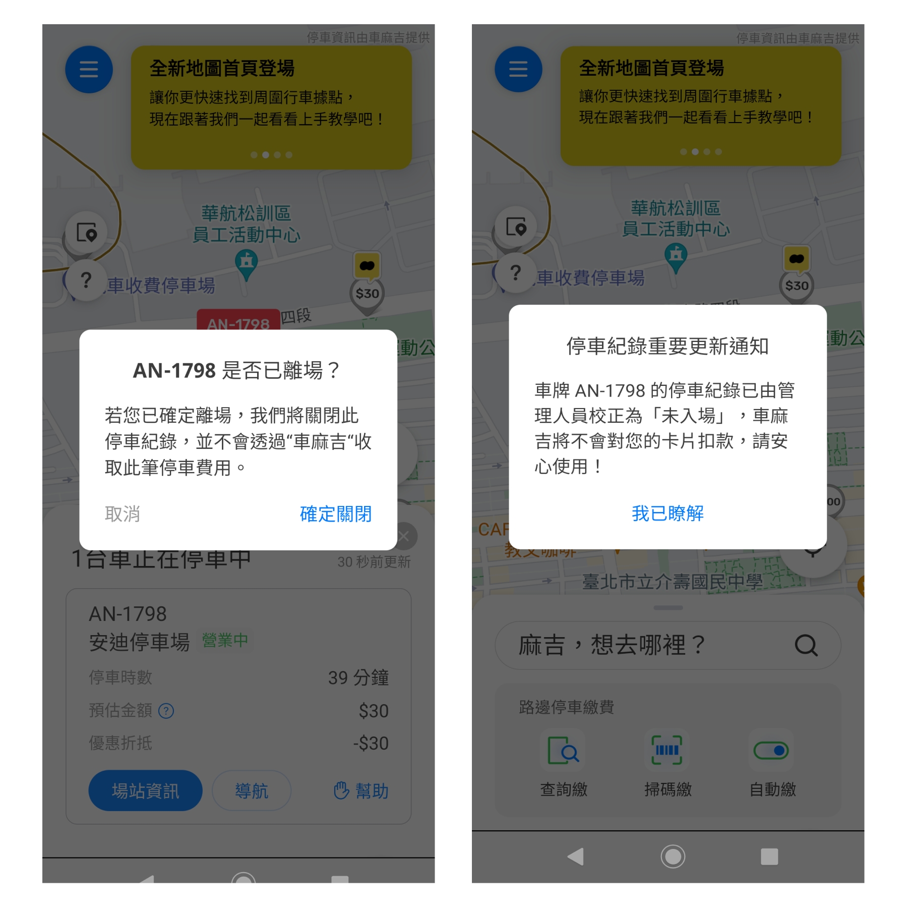 我已離場卻還顯示停車中