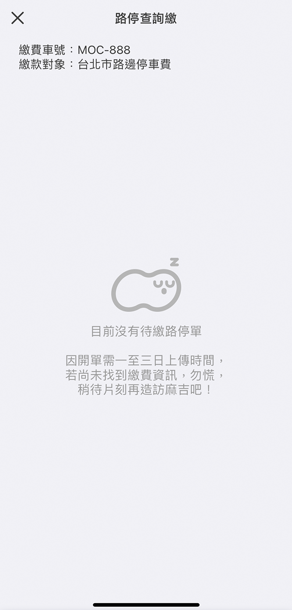 由於路邊停車訂單開單後,需要 1 - 3 天時間上傳,若您未找到您的訂單,請不要擔心。