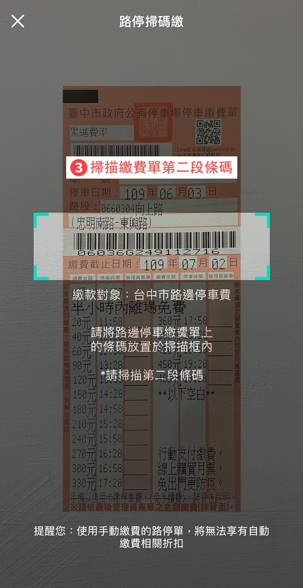 掃描繳費單的第二段條碼,確認資訊並完成繳費!